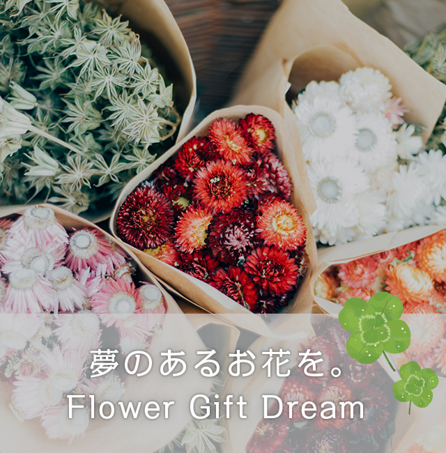 当店は大阪府堺市にあるフラワーギフト ドリームです。地元のお客様に、お花を身近に感じて、夢のある生活を過ごしていただきたいと思っております。